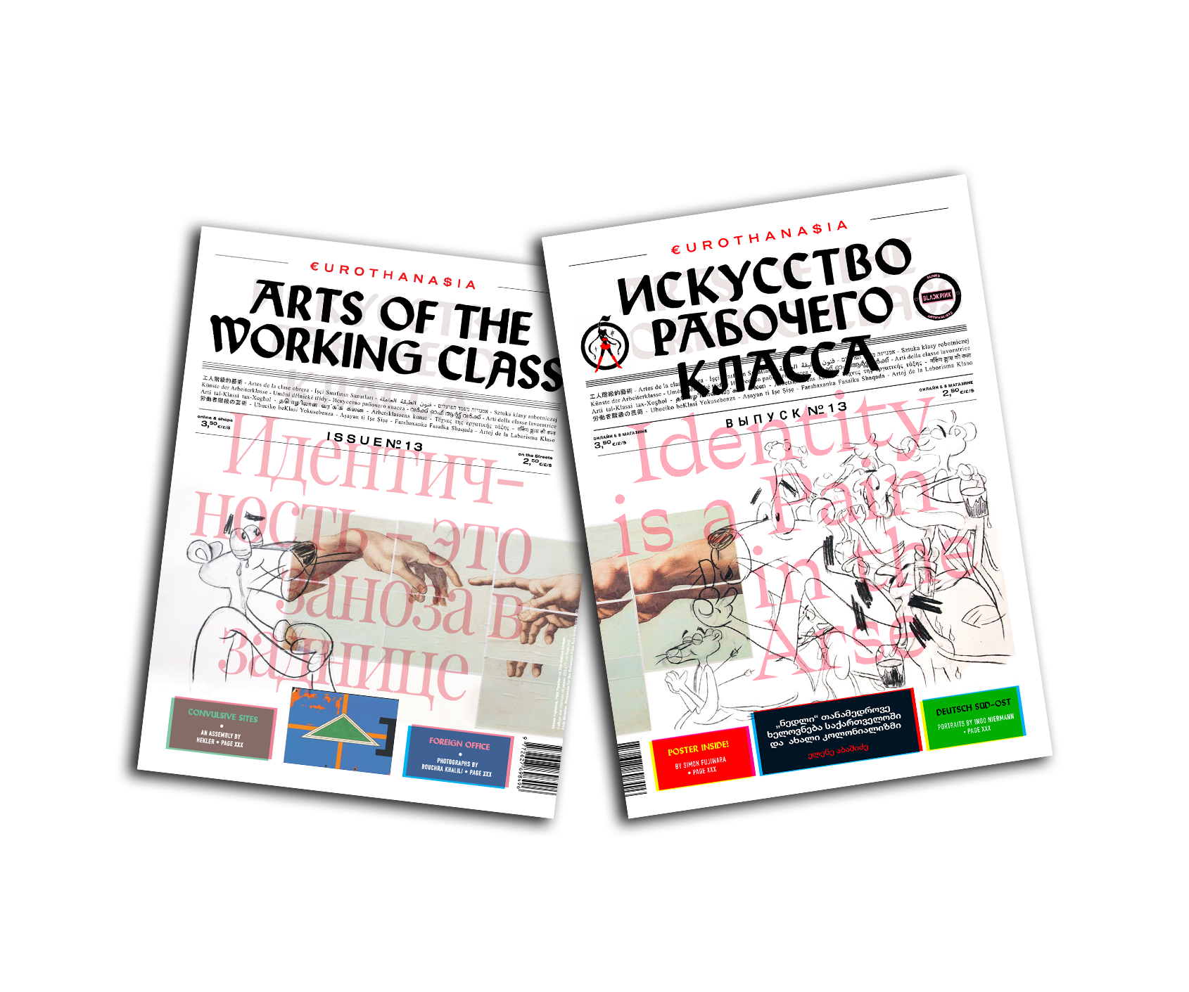 Diesen Herbst bekommt AWC zwei Titelseiten, auf denen sich Englisch und Russisch begegnen. Zwei Sprachen die, mit ihrem kyrillischen und lateinischen Alphabet, für sich widersprechende Europäischer Konzepte ökonomischer und ideologischer Aufteilung stehen. Jene Aufteilung ist nach wie vor umkämpft, das Erbe der Weltkriege als politisch-ökonomische Polarisierung der Welt weiterhin präsent.